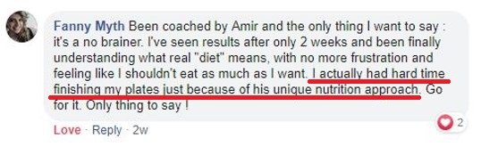 As a matter of fact, most of our clients report they have trouble eating all the food in their meal plans. At least a few times a week I'll get a message from a client saying: "damn it Amir, I can't eat this much!"